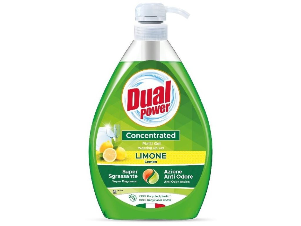 Dual Power Limone 1L jako prostředek na mytí nádobí slouží k efektivnímu čistění talířů, příborů, sklenic i hrnců při ručním mytí. Produkt je vhodný na všechny běžné druhy domácího nádobí a zanechává povrchy lesklé a bez mastných stop. Díky parfemaci s citronovou vůní také osvěží kuchyň během mytí.
