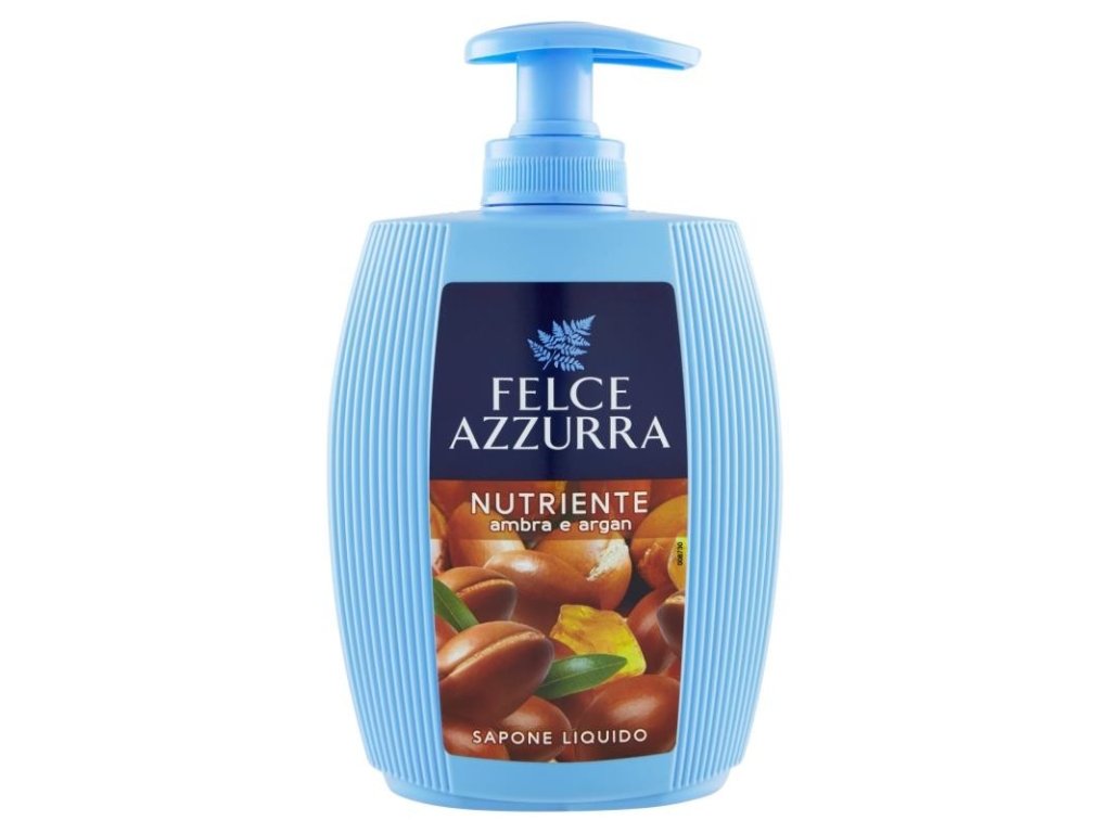 Vyživující tekuté mýdlo Felce Azzurra Nutriente Ambra e Argan (jantar a argan) díky svému speciálnímu složení obohacenému o hydratační složky jemně čistí pokožku rukou a obličeje a zanechává ji hladkou a měkkou. Arganový olej obsahuje zklidňující a vyživující složky a poskytuje intenzivní exotickou vůni. Složení s aromatickými esenciálními oleji. Dermatologicky testováno. Dovoz Itálie.